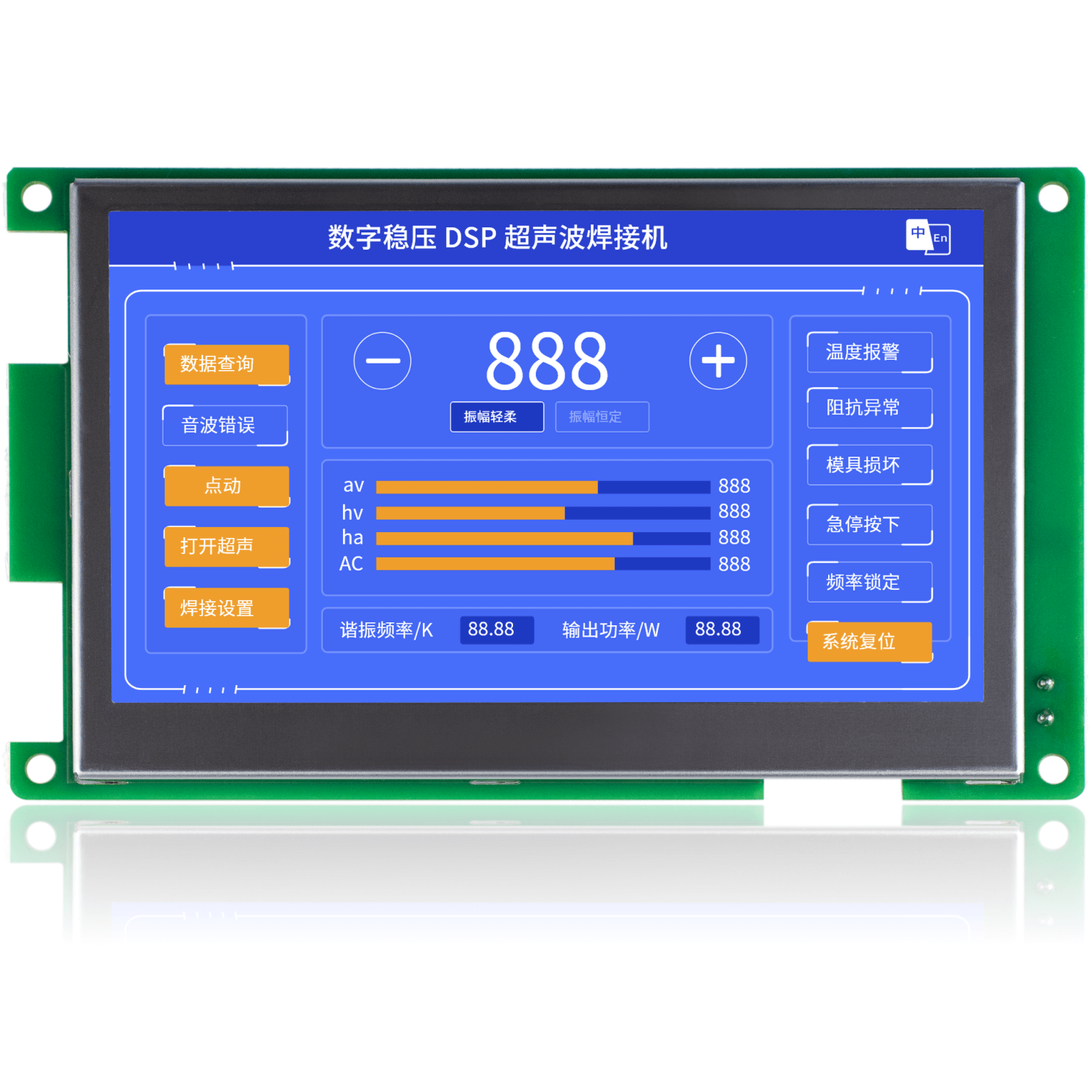 金璽HMI應用在超聲波控制上,安裝在控制機箱上對超聲波進行數(shù)據設定和監(jiān)控。